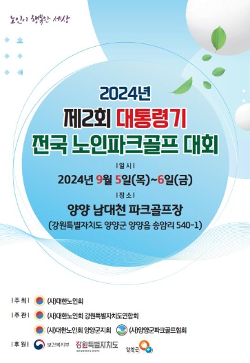 [제일경제신문]‘2024년 제2회 대통령기 전국노인파크골프대회’가 9월 5일과 6일 양일간, 양양 남대천 파크골프장에서 개최된다.