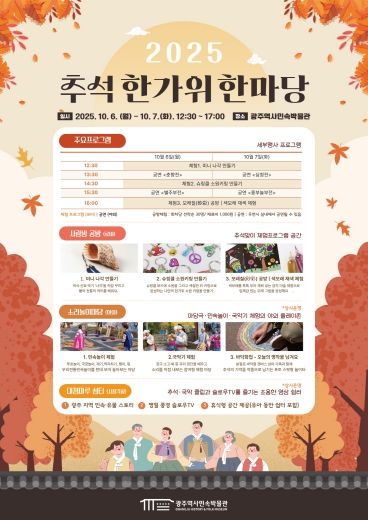 [제일경제신문]광주역사민속박물관은 추석 명절을 맞아 오는 6일부터 7일까지 이틀간 ‘2025년 추석 한가위 한마당’을 개최한다.