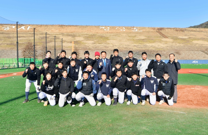 김한종 장성군수가 27일 원주고 야구 선수단이 동계 전지훈련 중인 장성호 체육공원을 찾았다.